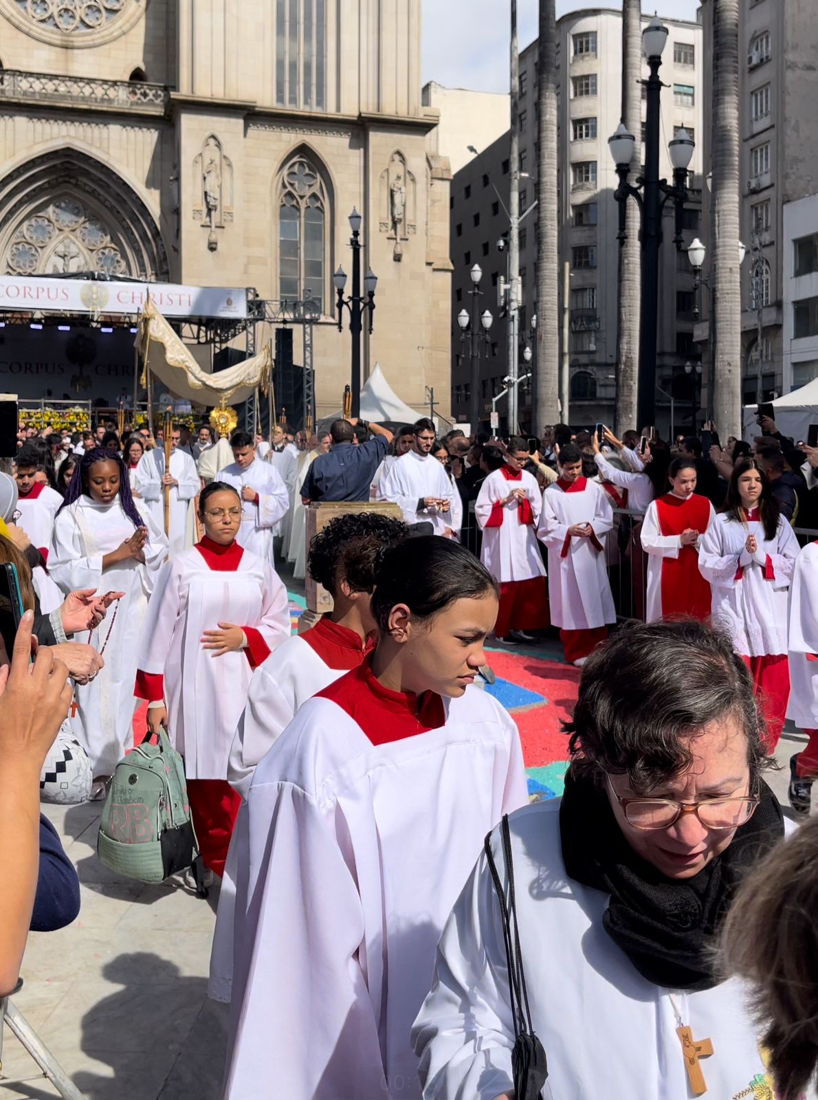 No dia 30 de maio, os nossos dedicados coroinhas e cerimoniários da Paróquia Santa Cecília também participaram da solene celebração de Corpus Christi na