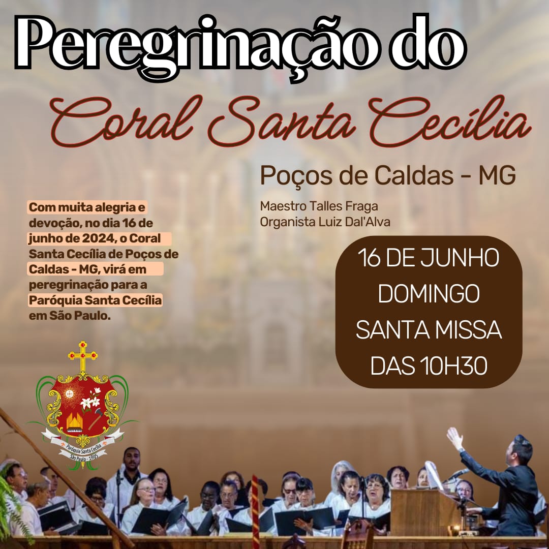 No próximo dia 16 de junho, durante a Santa Missa das 10h30, teremos a honra de receber a Peregrinação do Coral Santa Cecília de