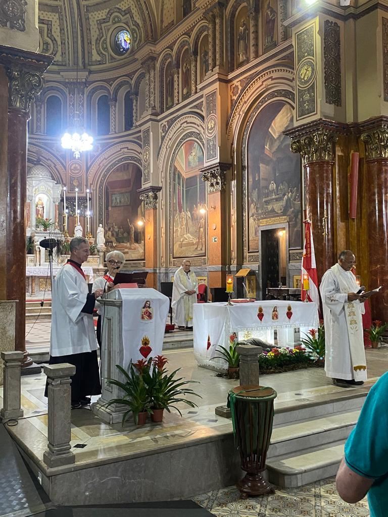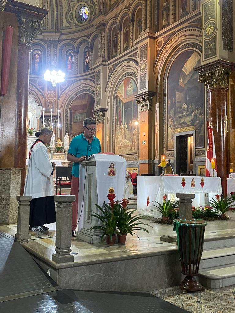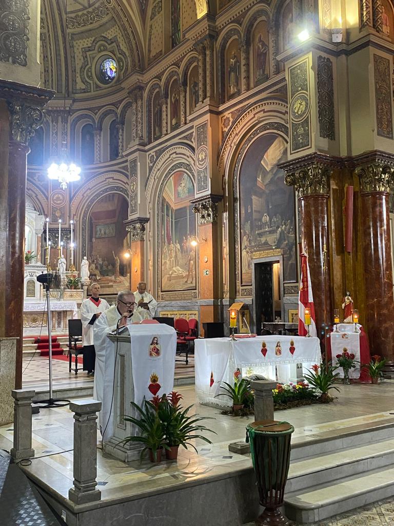 Às 18h, a Santa Missa Votiva ao Sagrado Coração de Jesus foi presidida pelo Cônego Alfredo e concelebrada pelo Padre Eduardo, proporcionando a todos uma oportunidade de elevar suas preces e adoração a Jesus, o manso e humilde de coração. Que todos nós possamos moldar nossos corações à semelhança do Dele, buscando a santidade e o amor em nossa jornada espiritual.