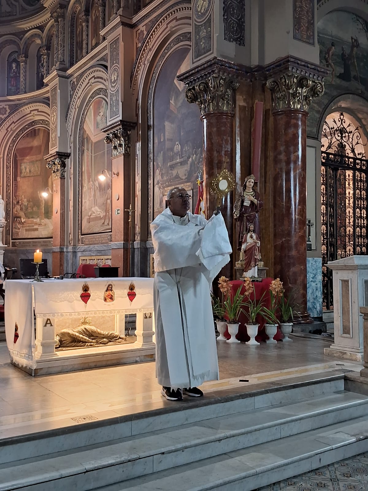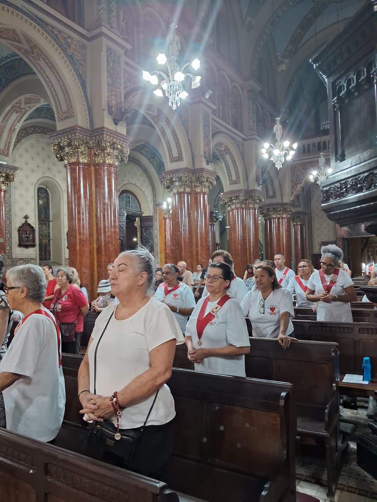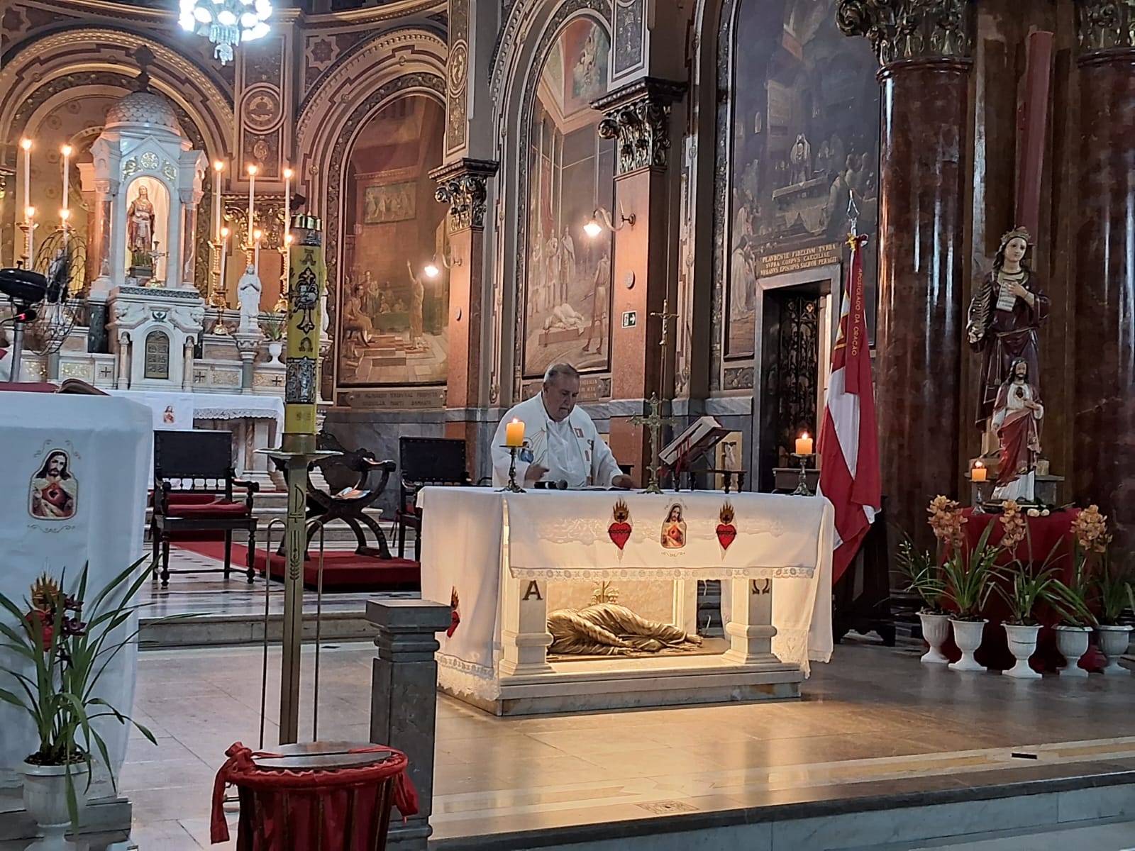 Após os momentos de louvor, o Diácono Francisco conduziu a Santa Adoração ao Santíssimo, seguida pela celebração da Santa Missa do Sagrado Coração de Jesus, presidida pelo Padre Eduardo. Agradecimentos foram feitos a todos os presentes, ao Cônego Alfredo, ao clero, às missões do papa, aos padres, diáconos, bispos e a todos os ministérios da comunidade.